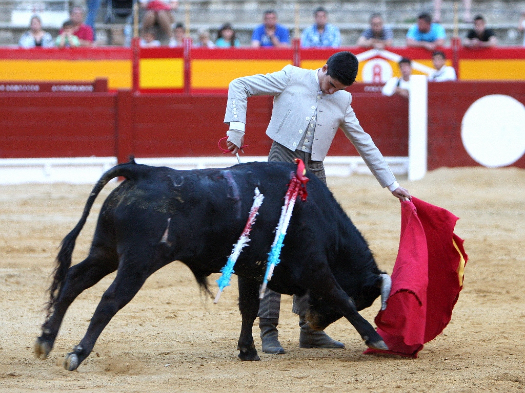 El novillero de la escuela taurina alicantina cortó dos orejas en la primera clase práctica de la Feria de Hogueras